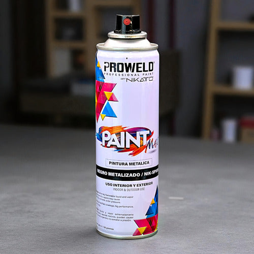 La pintura en aerosol metálica PROWELD línea Paint Max en presentación de 250 ml ofrece un acabado decorativo brillante ideal para proyectos de interior y exterior. Su fórmula de secado rápido, buena adherencia y cobertura uniforme permite obtener resultados profesionales en superficies variadas con aplicación sencilla y práctica.