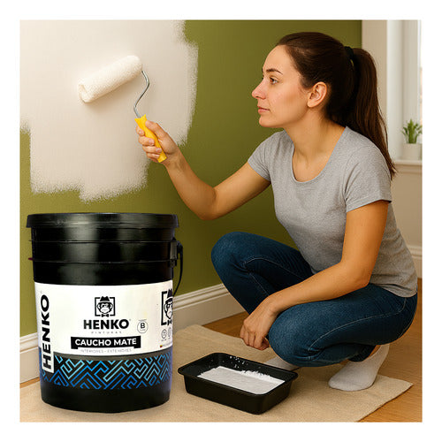 La pintura caucho tipo B Henko en presentación de 4 galones es ideal para proyectos amplios de decoración y protección en interiores y exteriores. Ofrece un acabado mate de buen rendimiento, con secado rápido y cubrimiento uniforme, brindando practicidad y durabilidad en ambientes residenciales, escolares y comerciales. Su fórmula base agua asegura bajo olor, fácil aplicación y un mantenimiento sencillo al ser lavable.
