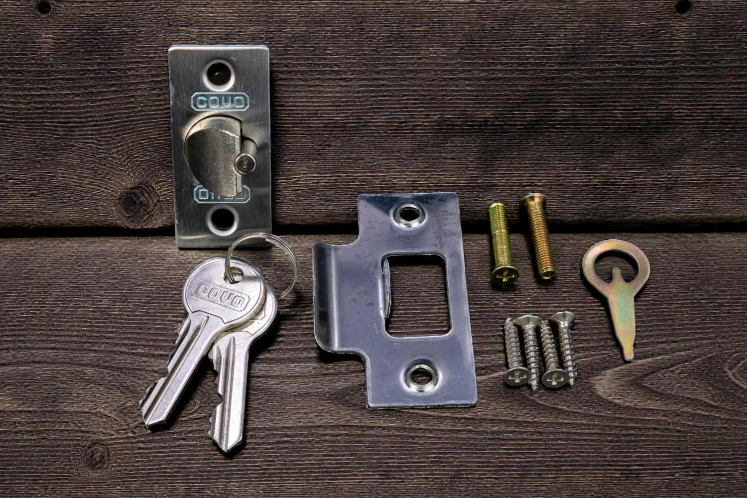 * Incluye: 2 llaves de latón, pestillo, accesorios de instalación e instrucciones