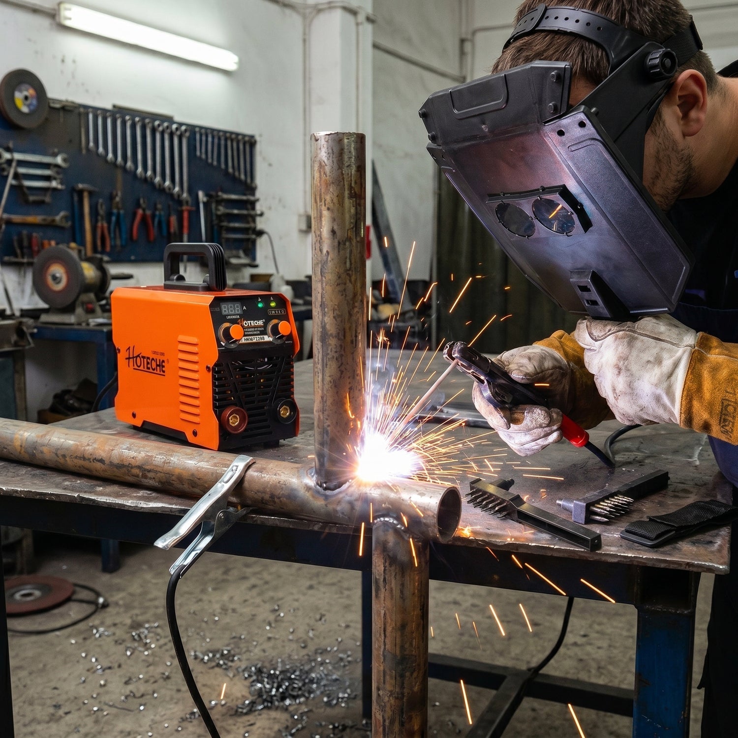 Esta máquina de soldar está diseñada bajo el proceso MMA (Manual Metal Arc), lo que significa que utiliza electrodos revestidos para realizar el trabajo. Es la solución perfecta para trabajos en exteriores y reparaciones rápidas, ya que no depende de suministros externos complejos, permitiéndote soldar con libertad en cualquier lugar.