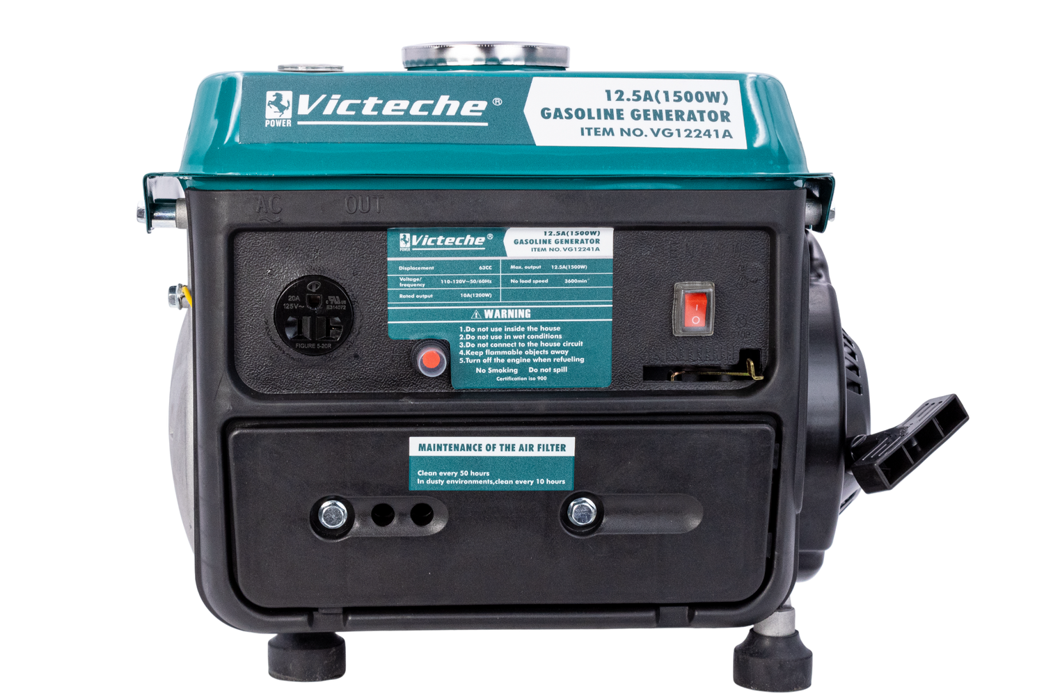 El generador a gasolina Victeche VG12241A es la opción ideal para contar con energía portátil en cualquier momento. Compacto, liviano y eficiente, ofrece un suministro estable de voltaje y frecuencia, perfecto para alimentar luces, ventiladores, camping y pequeños equipos eléctricos con total seguridad y bajo consumo.