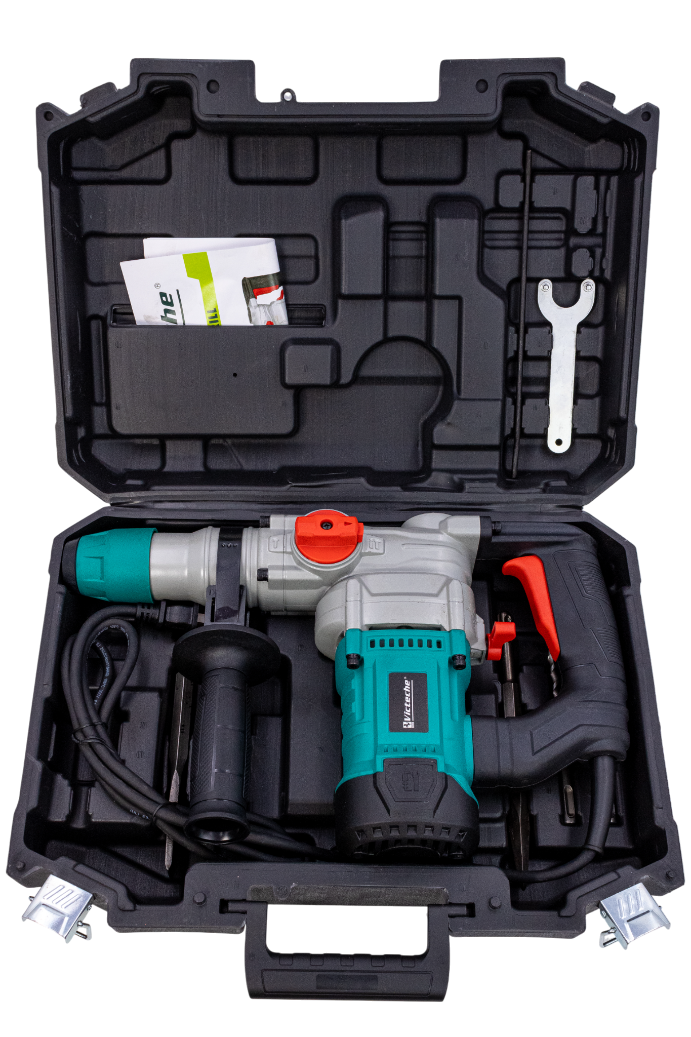 El rotomartillo Victeche VP10311A es la herramienta ideal para trabajos profesionales de perforación y demolición ligera, ofreciendo potencia, precisión y un kit completo para que puedas enfrentar concreto, metal o madera con total confianza y eficiencia.