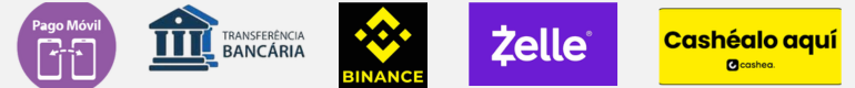 "Contamos con métodos de pago como Zelle, Zinli, Binance, Pago Móvil, y transferencia bancaria (paga con Cashea)."