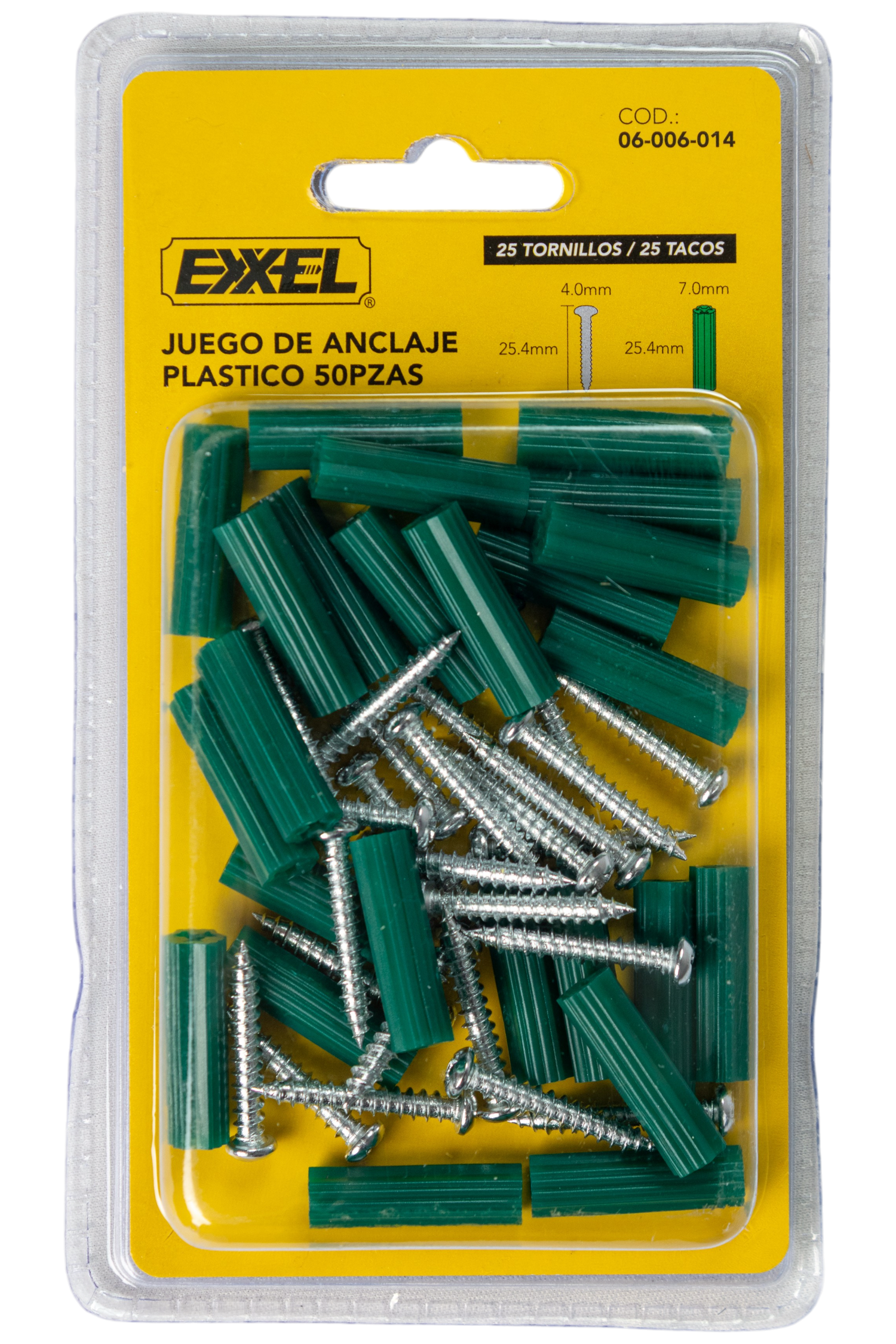 * Contenido del empaque: 25 tacos (ramplug) y 25 tornillos
