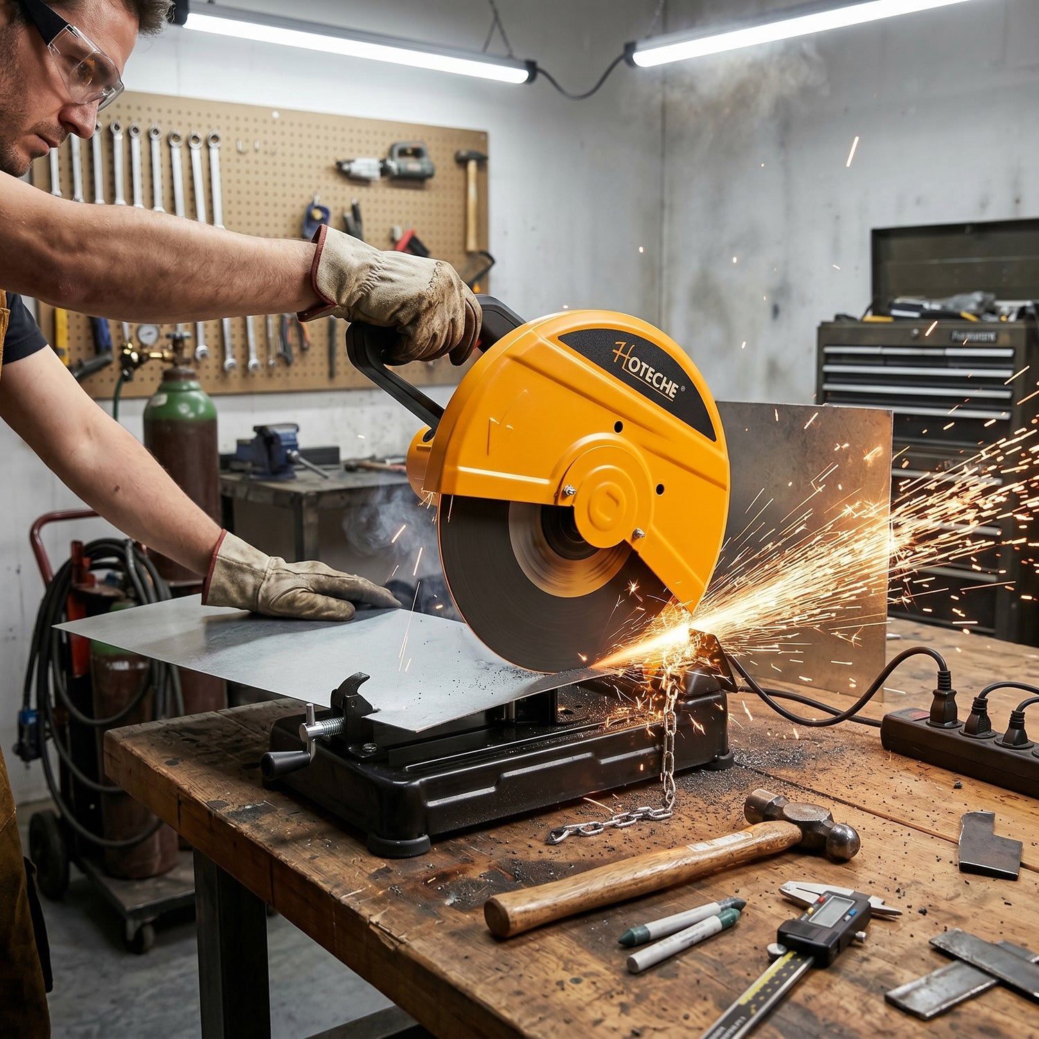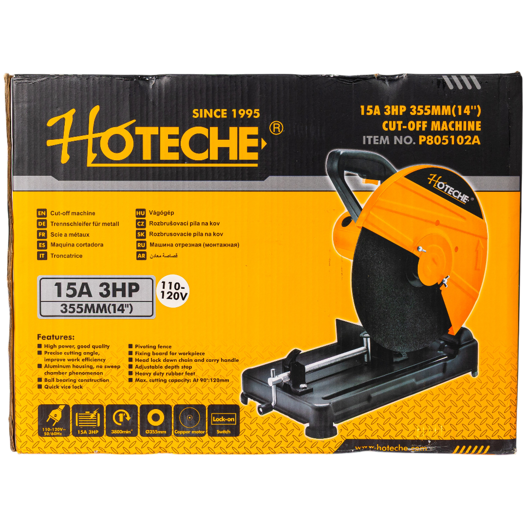 * Respuesta: Está diseñada específicamente para metales ferrosos, como tubos de acero, perfiles estructurales, ángulos y barras sólidas, siempre utilizando el disco abrasivo de 14 pulgadas adecuado.