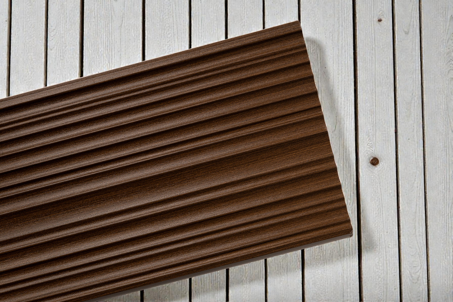 Respuesta: Tiene diseño ranurado 3D tipo listonado que aporta textura y profundidad visual.